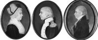 ↑Echtpaar Abbema-Testas en zoon te Den Haag, 1802.Jacob Carel Abbema was Lieutenant Colonel van het 1e Bataljon van de 3e Halve Brigade, gedoopt 14-9-1749 (geref.) Utrecht, ovl. 16-3-1835 Haarlem, z.v. Jan Fredrik Abbema (1709-1766) en Jacoba Mattina Smitsaert (1709-1791); gehuwd (1) 28-11-1781 Utrecht met Louisa Elisabeth Testas, gedoopt 2-6-1748 Amsterdam Nwe Kerk, ovl. 1812, d.v. Jan Testas (1705-1763, directeur Levantse Handel) en Louisa Constantia de Famars (1713-1781). Zoon: Jan Fredrick, geb. 1784 Utrecht; dochter: Constantina Maria Louisa, geb. 1788 Utrecht.