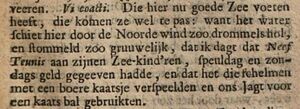 [[File:1693 Parnas-Loof - Neef Teunis.jpg|thumb|“Neef Teunis aan zijnen Zee-kind’ren” in ''Gemengelde Parnas-loof'' 1693 (bl.37) [[https://books.google.it/books?id=9i0GPo136WEC bron 1]; [https://www.let.leidenuniv.nl/Dutch/Renaissance/Parnasloof1693.html bron 2]].]] | |||