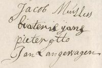 Zondag 24 januari was zoon Pieter Otto getuige, met Jan Langewagen bij notaris C. van Beek: het testament van Jacob Mullers (die twee jaar eerder getuige was in het testament van Pieter en Maritje) en Biateris Jans (klasse onder ƒ2000) [NA 2532/184].