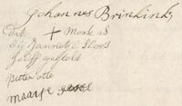 11. Johannes Brinkink, boekverkoper (ten laatste vanaf 1782) was zoon van Willem Brinkink, boekdrukker en -verkoper te Harderwijk van 1732-1762 (zelfstandig v/a 1733) [div. afdr. Rijkmus.]; boek 1748. Hij was getuige 28-4-1757 [NA 2423/] in akte voor echtpaar Cazenove-Groenveld (zie 1747).