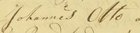 Zaterdag 28 november gingen te Deventer in ondertrouw (bij de schepenen) Johannes Otto (spelling handtekening; vermoedelijk een neef van Ignatius Ott), j.m. soldaat in’t regiment van Generaal Aijlua [Aylva] in de Hagenstege, en Joanna Pens (kon niet schrijven), j.d. in de Borssenstege; getrouwd 13 december [; zie ook 24-4-1752, 21-11-1753, 26-10-1764 en 19-9-1771].