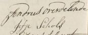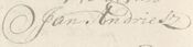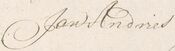 Zaterdag 17 april was Jan Andriesz getuige (met Christiaan Mulder, die met kruis ondertekent) bij opstellen machtiging van wijnkoopman Frans Spaan door Barent Brunstrink[14] [NAE 1381 akte 22/92 scan 270].