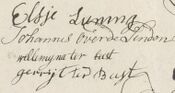 Jan Overlinde clercq van de heere procureur gnl deser landschappe, wonaghtigh binnen Leeuwarden, oud in ’t 22ste jaer, geciteerd geedight ende gevraeght als vooren verclaerde op alle gebilletteerde [artikelen] sigh dien te neffens te gedragen, tot de praep: informi in pos: wet no. 7 overgeleght verbleef daer nae voorlesinge als de opreghte waerheijt sijnde nogh bij, met recognitie van sijn hand daer onder staende, konde van de interrogaten anders niet seggen als alleen, dat terwijl het water uijt het gat gehoosd wierde, alwaer het kint in was, een vreemd mans persoon bij haer was gekomen, die geseght wierde daer dighte bij te wonen welke vroegh wat de getuijge cum soc: daer soghten, dogh was op die vraegh niets geantwoort waer mede sloot en persisteerde nae praelectie actum ut supra / [w.g.] J. O. Lende