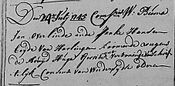 Zondag 4 oktober doop kleindochter Janna, d.v. Anthonie Fransz van Quaden en Harmeintje Jans, get. Janke Johannes [dtb 11/24].