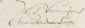 - ↑ Meinert Simonsz Semeyns, geb. 20-7-1704, ovl. 16-2-1786, Boekdrukker en verkoper 1731-50, Commissaris van Kleine Zaken 1732, 34, 39, 5x Diaken 1733-43, Ouderling 1750, woonde Venedie, gehuwd 3-5-1729 Anna Palenstein, geb. 1709, ovl. 18-10-1782. — “Meindert Semeyns [1695-1775] was een liefhebber-natuurkundige, die in de tweede helft der vorige eeuw van zich heeft doen spreken” [hk. in boek (waarin conficterende geb./ovl. data) over gesch. wis-/natuurkunde uit 1878]; zie ook 2 attesten over door hem uitgevonden kompas 17-5-1767 [NA 1353/240-246] — “De familie Semeyns was nauw verbonden aan de geschiedenis van Enkhuizen en drie broers verwierven in 1577 van Willem van Oranje het zogenaamde Privilegie Semeyns waarmee aan leden van hun geslacht een voorkeur van ambten werd vergeven. (...) De familie Semeyns stierf in 1840 in mannelijke lijn uit met de boekdrukker Willem Palenstein Semeyns (1743-1840)” [wikipedia: Van Doesburgh (geslacht)] — zie ook zoon Willem onder 1783 en 1794.
